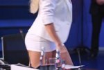 Промпт: Dominatrix. Начальница. Камера вид снизу вверх пролетает у неё между ног. Девушка двигает тазом перед камерой. Лицо все время остается в кадре. Камера пролетает с одной стороны на другую. Дерзкая, похотливая и эмоциональна. Взбешена. Угрожает строго и нежно: "Сейчас сделаю тебя своей сучкой!". Слово "сучкой" агрессивно растягивая.