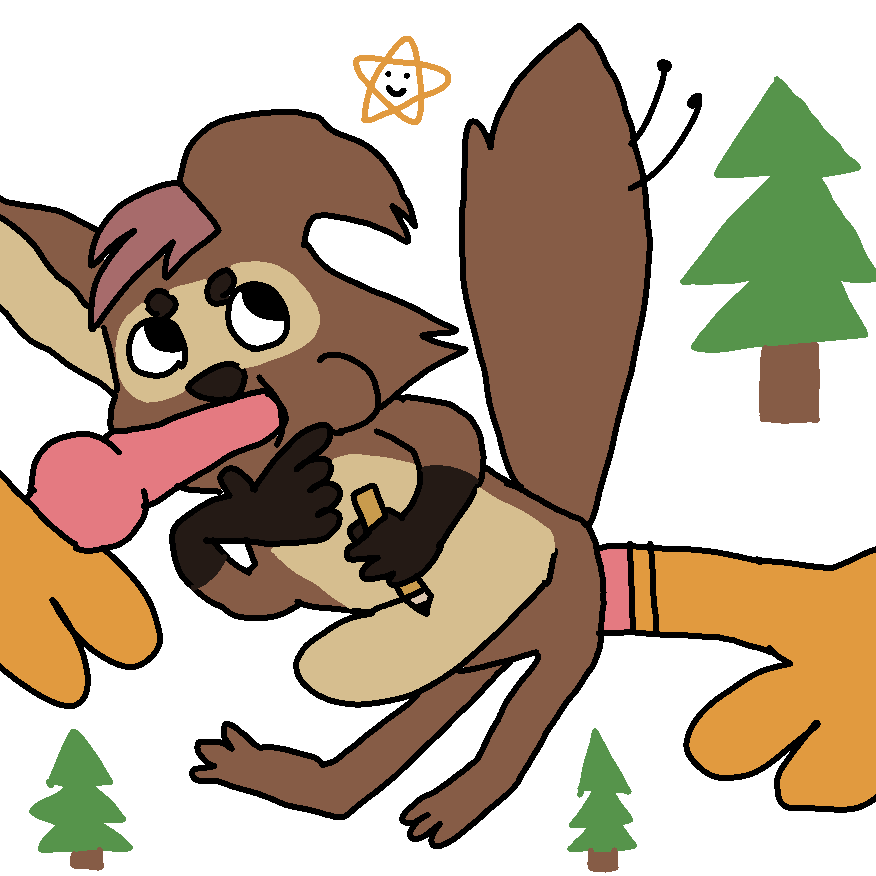 Рыжая бобриха Рыжелина (1) с милым взглядом выгрызает резцами из деревянной пластины символ сердечка, пока её искренний любитель (в два-три раза меньше Рыжелины) Корри-Утконос (2) с возбуждением (заметьте, там есть реф его пинуса) иль просто любовью одевает её в лёгкий зимний прикид с шапкой, шарфом, чулками, может расстёгнутой курточкой, но с сосками бобрихи напоказ.