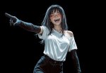 >>327766858 photorealistic, long hair, black hair, black beautiful lingerie, hip length hair, hime cut, blunt bangs, medium breasts, soft lips, athletic, pale skin, laying in bed, looking at viewer, weak smile, dark grey eyes