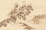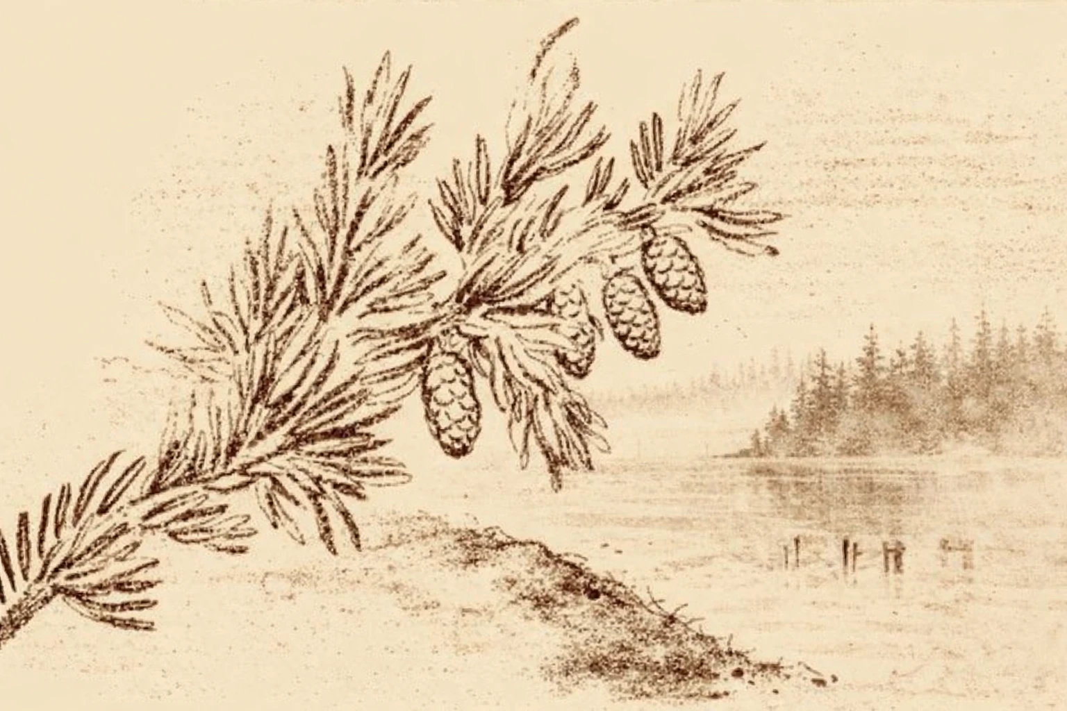 Без пояснений скормил еловые шишечки Соре и она усмотрела в крестах на поле отражение ветвей на воде или просто какую-то торчащую из водной глади хуиту. Может, так оно и есть? Может, это не поле? Возможно изображение сперва было плохо напечатано, а потом ещё и хуёво отсканированно, так что детали потерялись. На оригинале это поле действительно больше напоминает берег и реку.