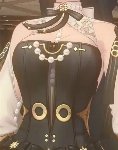 Такое ощущение, что вы не понимаете, что кольца под сиськами на одежде нужны для Джейн Доу всегда, так как она же крыса. У крыс короткие лапы и из-за особенностей строения тела, в стоячем положение у крыс лапки всегда скрючены на груди. Чтобы Джейн Доу оставалась в образе и продолжала ассоциироваться с крысой у игрока, она должна всё время держаться руками за элементы одежды (кольца) под грудью, чтобы держать руки как скрюченные лапки у крысы в стоячем положении