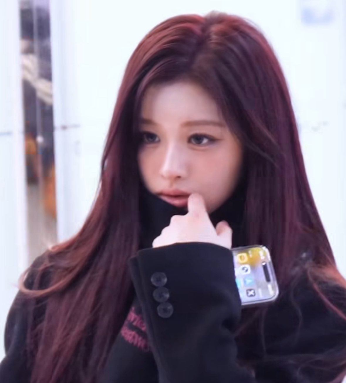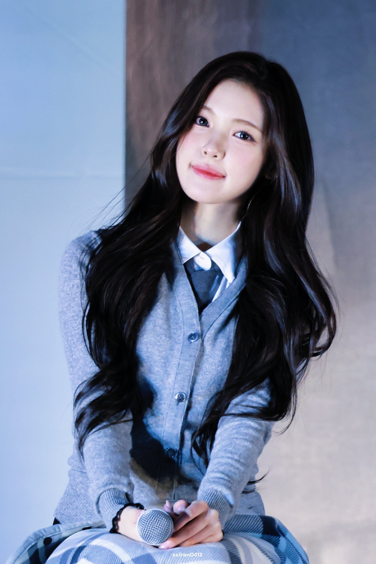 Не знаю, сколько там баллов, но мне кажется, это очень красиво, когда она улыбается, прищурившись, и когда она крутит палец и кусает его... В последнее время меня не особо интересовали айдолы, но сейчас они меня по-настоящему завораживают.