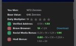 Для регистрации нужна gmail почта, потом попросят указать ваш ZEN кошелек, его можно взять отсюда https://www.binance.com/ru/register?ref=MEM8I4UM (перейдя по ней, вы будете получать 10% от моей комиссии от торговли на этой криптобирже), это если у вас нет ZEN кошелька, можно просто скачать его себе на телефон ZEN Wallet. Привязываем гугл, фейсбук, твиттер, linkedin, так будет увеличена награда каждодневная. Можно еще и скачать браузер Brave, и забирать через него. С каждым днем увеличивается множитель для выплаты, и на 5 день вы получаете возможность сыграть в бонусный раунд. 6 дней растет множитель и потом сбрасывается.