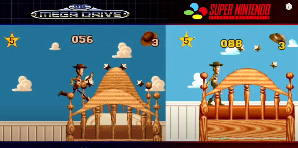 >>2496760 Не совсем так. На снес как раз цветовая палитра была богаче(что впрочем стало хорошо заметно только на мумуляторах, а не на тв в то время), но проц действительно был медленнее. Учитывая что в те годы графика обрабатывалась на процессоре(за исключением редких выделенных штук, типа того же плавного скроллинга на нес или мод7 на снес), это выражалось в том, что в версиях на мд было выше разрешение, а в 2д играх это означало, что ты мог больше всего вместить на экран, показать в кадре больший кусок уровня. Ну и иногда в плане эффектов сега тоже рулила, взять например историю игрушек - на снес версия какая-то покоцанная, паралакс упрощен(на первом уровне например пробеали спинку кровати и подушку в этом псевдо-3д, т.е. снес не потянула лишние слои параллакса), некоторых эффектов нет.