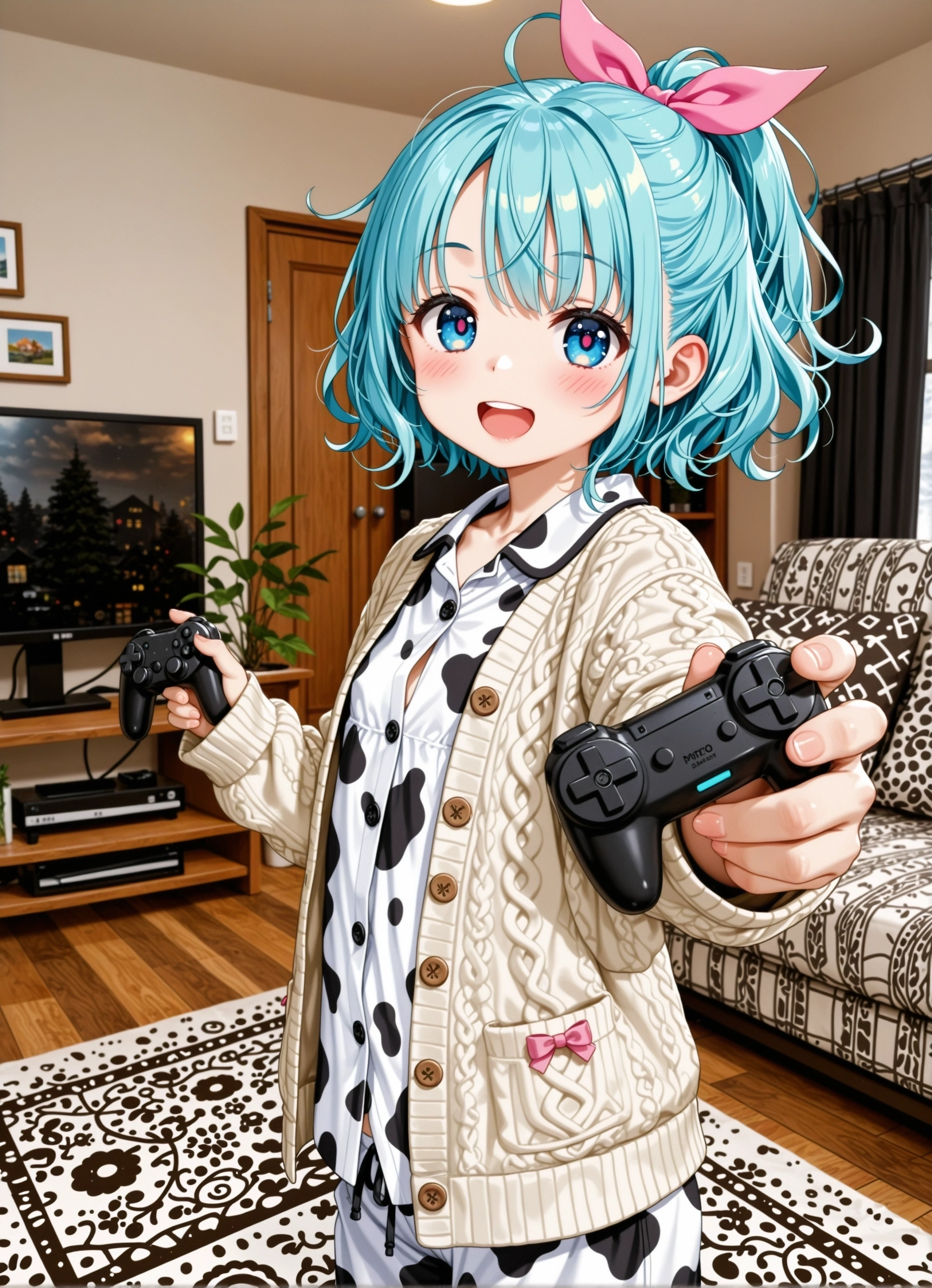 >>1462741 Мой промт не поможет, так как я делал с контрол нетом: masterpiece, best quality, very aesthetic, absurdres, newest, highres, 4k, rich colors, kaito, 1boy, solo, blue_hair, male focus, blue_eyes, male_focus, disposable_cup, blue_eyes, blue_hair, necktie, cup, coffee_cup, brown suspenders, holding, solo, shirt, hand_in_pocket, pants, red_necktie, white_shirt, holding_cup, coffee, blue pants, white wristwatch, smile, (four fingers: 0.8), (white background: 2) Negative prompt: nsfw, worst aesthetic, worst quality, low quality, bad quality, lowres, jpeg artifacts, censored, (bad anatomy: 2), bad hands, extra digits, fewer digits, old, adversarial noise, (socks: 2), (barefeet: 2), (belt: 2), wide neck