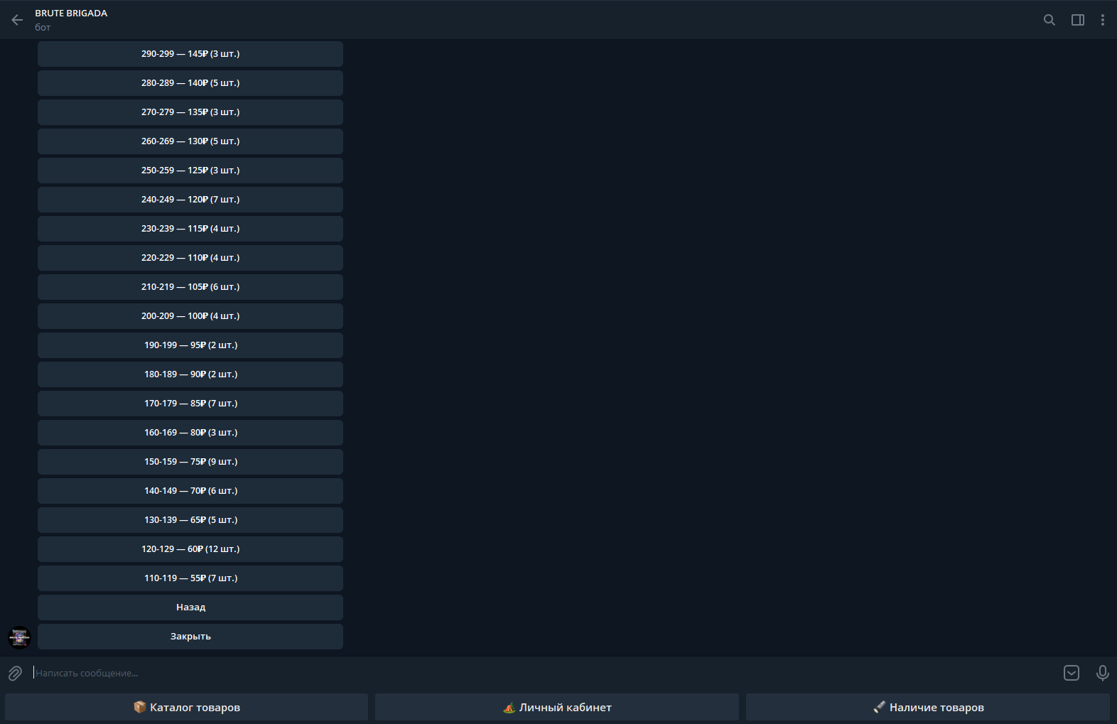 1-й пик: наличие и цена товара 2-й пик: пример работы Так же ссылка для примера, пока что она действует (баланс обновляется после списания не сразу, т.к. это эмулятор. Она пустая уже): https://5ka.app/8d162c5b-7aa2-4d53-9a3d-8db43241f77c