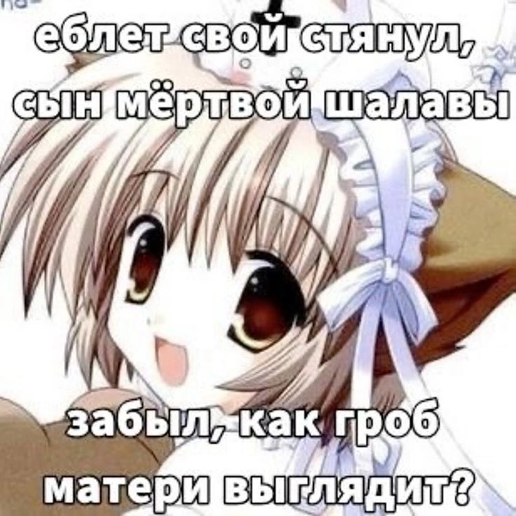 >Наоборот, я скинул с себя оковы одурманивающих манипулированием иллюзий и взглянул реальности в глаза. В то время как ты, оптимистичная соя, пребывает в состоянии убаюкивающего аффекта. >Я буду есть людей и ты мне нихуя не сделаешь. Не отдам свою жизнь без боя. Я выебу эту систему и заставлю её двигаться дальше без коллапса.