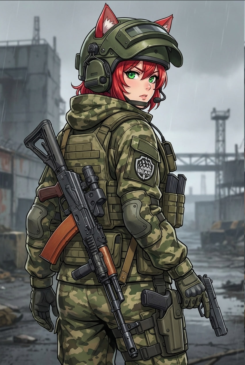 Гритинг всего один: Элличка палит {{yuzer}} во время соло патруля и берёт на прицел.