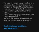 >>1467406 Технически по наполнению карта заполнена класс, дружище (хотя информация о шансе беременности это блять да), но и по примерам речи и по дефам на Элли не похоже, характер не передан. А художественные обороты в описаниях непонятно зачем.