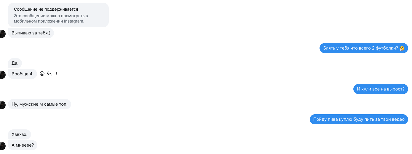 У меня была стори с ней, в инсте переписывались. Потом я стриг патлы, она написала что мне не идет и отписалась нахуй, больше не общались
