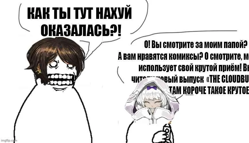 >>6090334 > главой > личноглавой > главным главой > было приказано > главой > а вот глава > личноглава > глава приказал > потому что глава Дыа, это ведь по приказу великого Главы солнце восходит на востоке и заходит на западе. Ты мне только вот что скажи: когда у нас в игре реально Глава вообще упоминался как кто-то, что ходит раздает поручения и приказы расписывает? Зена хоть раз говорит мол "а мне короче Глава приказал дать тебе шанс стать человеком"? Или может Гарион при виде демонической бабки расчехлила формлулярчик от Главы и зачитала "демоническую культиваторшу не трогать, позволить оттаскать себя за волосы и потыкать лицом в птичье дерьмо"? О, а может ты в Лоботомии помнишь как Бина говорит "ну мне вот личноглава приказал кабанчиком метнуться в лабораторию". Вообще нихуя такого не было, вы ебаные делюги. Это блядь восприятие на уровне среддита, где глава это просто всемогущий Личногитлер, который все о всех лично знает и за каждым арбитром в отдельности подтирает Богини, вот просто день и ночь не спит, лишь бы напакостить. И разумеется, этому злодею мы потом морду то набьем, за то что он злой злыдень такой, лично приказал арбитрам быть злыми! А так они бы добрые были, котят подбирали по закоулкам, дя. Комедия ебаная. Но конечно же гораздо реалистичней, чем просто признать, что каждый Арбитр сам себе судья Дредд и дрочит как хочет в рамках заданных правил - это невозможно. Разве может быть мир без личногитлера??? Хартьфу блядь.