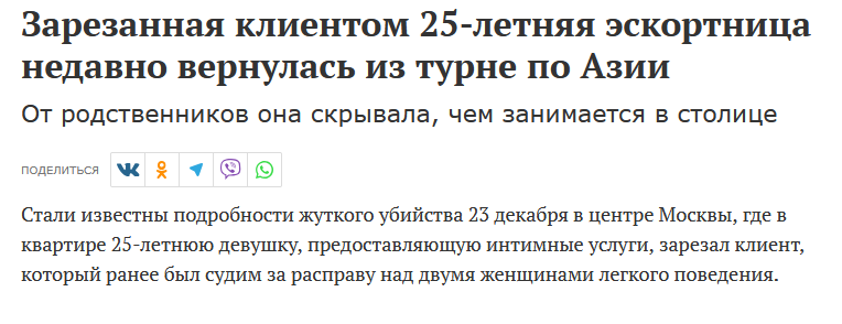 >>10476037 >Есть стори? Как-то слишком жестоко. Но самая шокирующая история — украинской модели Марии Ковальчук. После празднования своего дня рождения "в компании шейхов" девушка пропала на восемь дней. Последнее, что она успела сделать — позвонить маме и сообщить, что ее куда-то везут двое незнакомых мужчин. Через неделю Марию нашли на обочине дороги с переломанными руками, ногами и позвоночником. По одной из версий, ее выбросили с балкона многоэтажного дома.