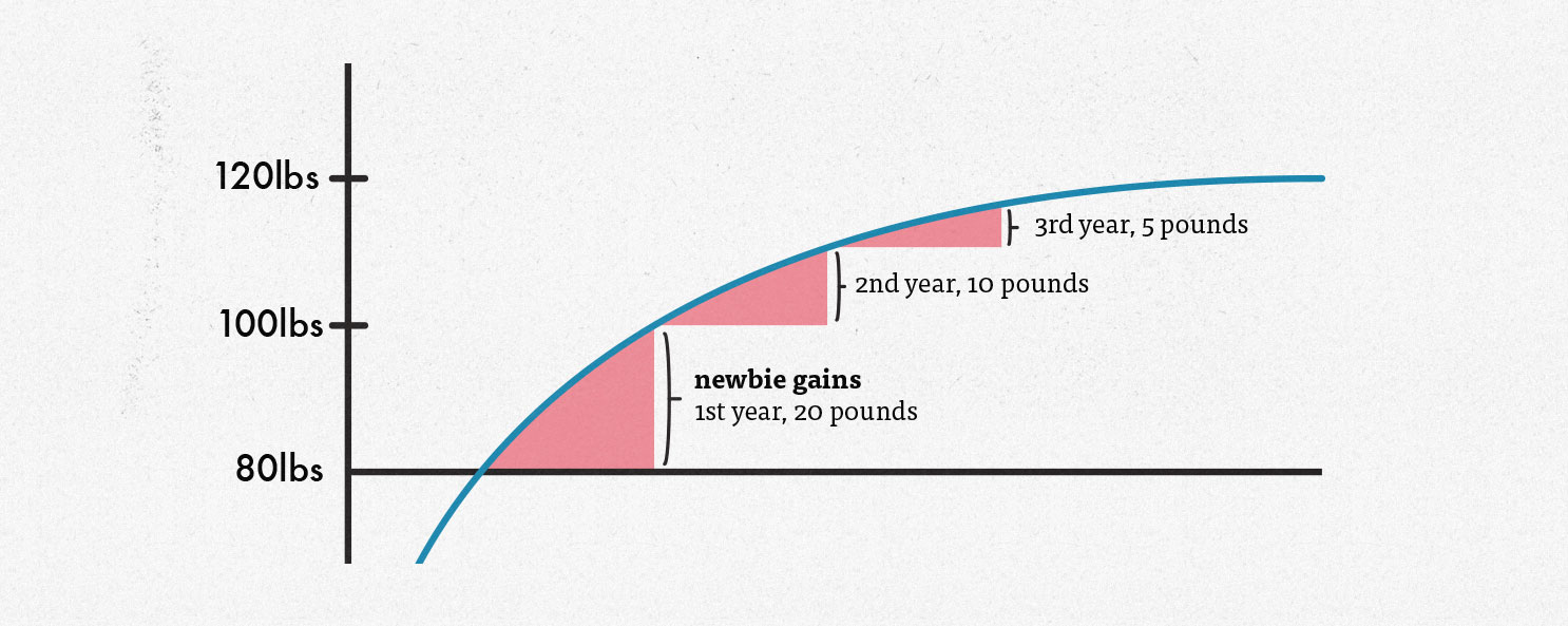 Новичок будет набирать мышцы даже если будет просто кардио делать. Буквально, самые базовые упражнения и питание хотя бы не совсем говно и ты за год набираешь 5-6кг изе. С нормальным подходом за первый год до 12 кг можно набрать чисто мышц.