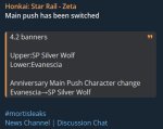 Анон ликс пишет, что ла манча единственный персонаж в 4.1 А ещё, что волчиха радость. Она вроде планировалась сразу после яэ и саппортом под герту, мб теперь она будет в команде радости. Так что возможно блядик не радость и будет единственным персом в 4.3