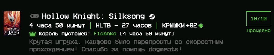 Если бы Илья бы человеком чести, он бы попытался искупить свою вину дропнув кучу игр и скатившись на последнее место, дабы принять позор пожилой жужелицы на себя. Но он так никогда не сделает.