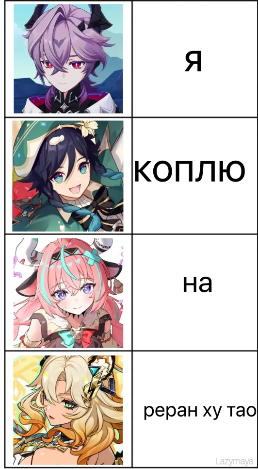 >>6104326 Ниночка лучшая! Райдэн - это электро-слайм, к людской морали отношения имеет меньше, чем местные ёкаи. Воля Небес Нин Гуан - обычная девушка из бедной семьи, которая пронюхала жизнь и достигла самой вершины пищевой цепочки. Фатуи боятся, Адепты уважают.