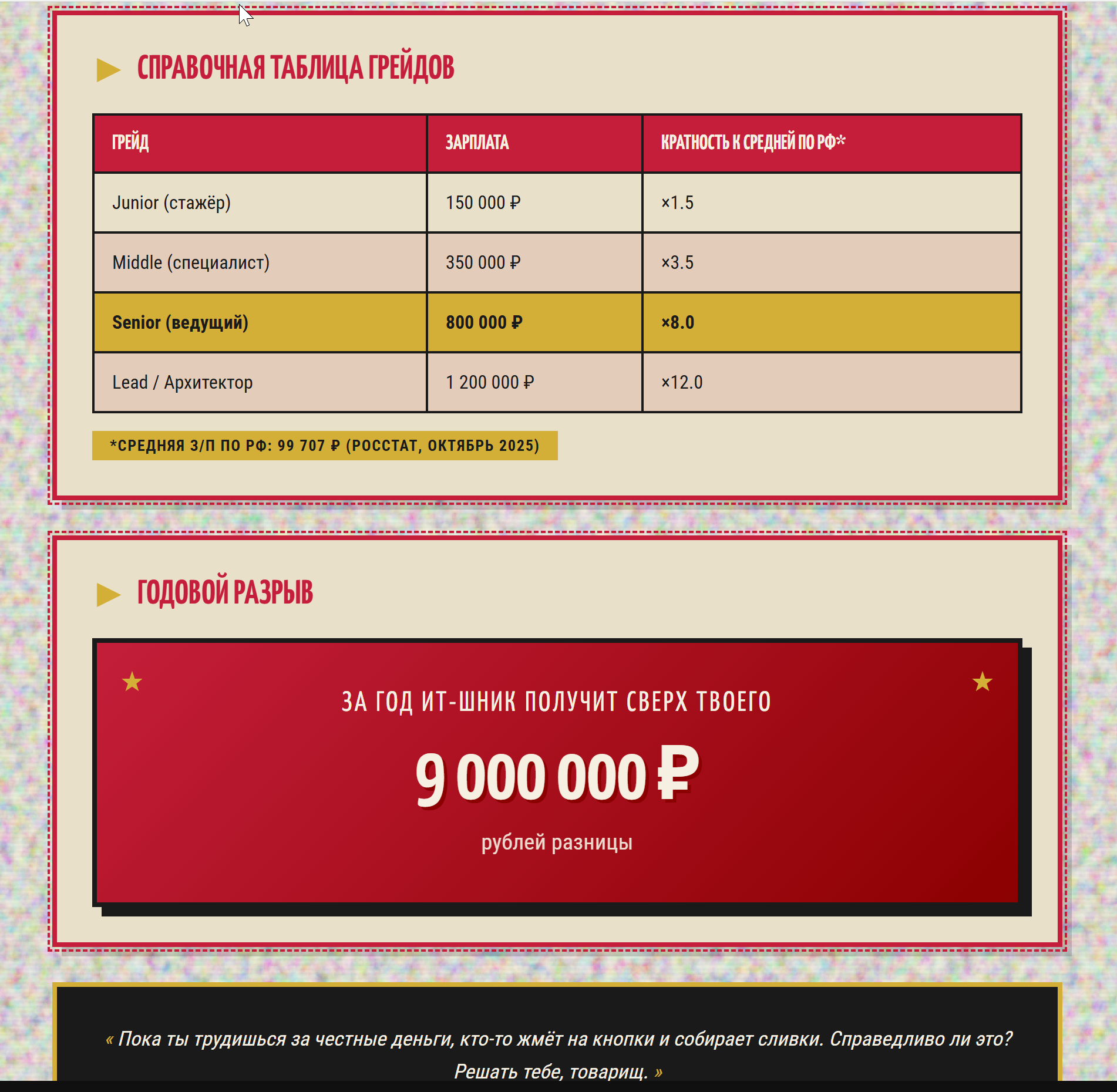 >>328091081 Чому без серпа и молота? > грейдов Каких нахуй грейдов, говори по русски "РАЗ-РЯ-ДОВ", как у слесарей и сварщиков, работягам непонятно будет.