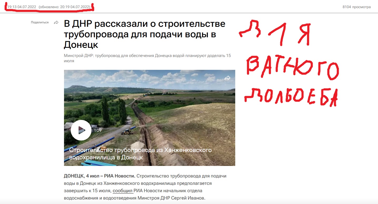 Пидорыч, до начала полноценной гойды в феврале 2022 года через даунецк шёл канал в мариуполь и Украиньци его не перекрывали поэтому. Сейчас мариуполь русня спиздила и поэтому Украиньци канал перекрыли. Так что отсчёт не с 2014, а с 2022 года идёт.