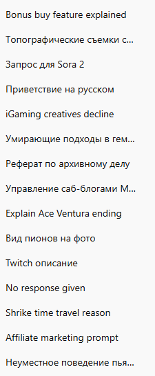 >>328126996 (OP) в основном по учебе. Закрывал семестр, времени на остальное особо не было. Из интересного только первые 2 запроса. Второй про ИИ - обсуждение нейротезисов из недавнего треда про ненужных айтишников. Там ИИ написал всякое умное про спецификации, про особое пространство, где вместо синтаксиса какая-то топология, захотелось узнать, что это такое.