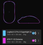 По итогу решил обратно к суперлайту вернуться, точнее к его форме, а не к самой мышке, ибо она уже кирпич для таких размеров. Пока заказал atk a9 air, легче vt2. vt2 air будет еще легче возможно, но мне лень ждать. Atk получается тоже дропнул - с ней аим очень сильно бустится в пиках, становится реактивным, потому что мышь маленькая и очень легкая, но отсюда и минус - все это нестабильно, нужно больше усилий прикладывать и рука устает.