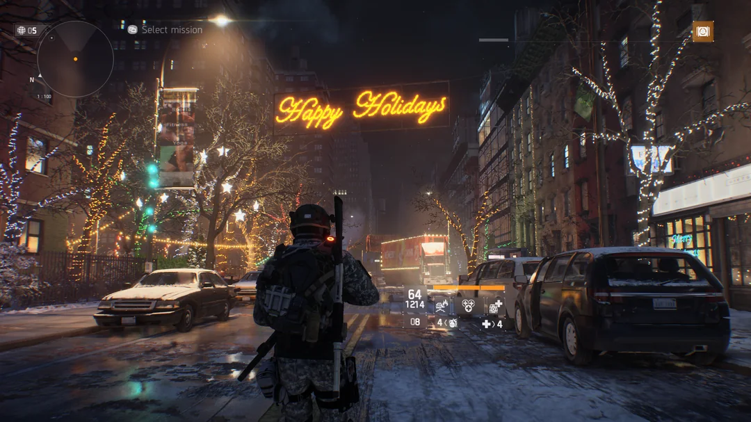 дивижн 1 лучшая игра с духом праздника там по сюжету людишек отравили коронавирусом и ввели локдаун именно в нг и это ньюерк, там самые дорогие украшения для нг везде делают,деревья светятся, всюду снежок, снежок в игре кстати лучший среди всех игр, есть вялый, есть метели, есть этот когда большие хлопья еле движутся вниз просто кайфы