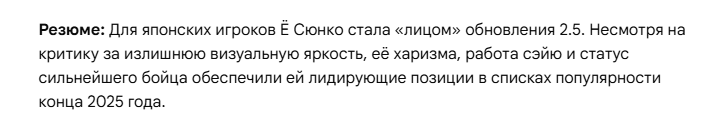 Меня одного всегда забавляли додики которые считают юшки чем-то невъебаться хорошим? Это же ебать кринж если высасывается из пальца, а в случае с лошадью это вообще творческая импотенция панамки и походит на лютое желание продать дохуя мандаринок на новый год или арбузы в августе. И вот на контрасте - Чжао, супер 100% топ дизайн, характер, ВАЙБ и при этом бесплатная, то есть панамке вообще было похуй как игроки на нее финансово отреагируют, но с таким отношением она вышла лучшим персом 2.0+, где-то на равне с фуфу, которую с таким же отношением выпускали.