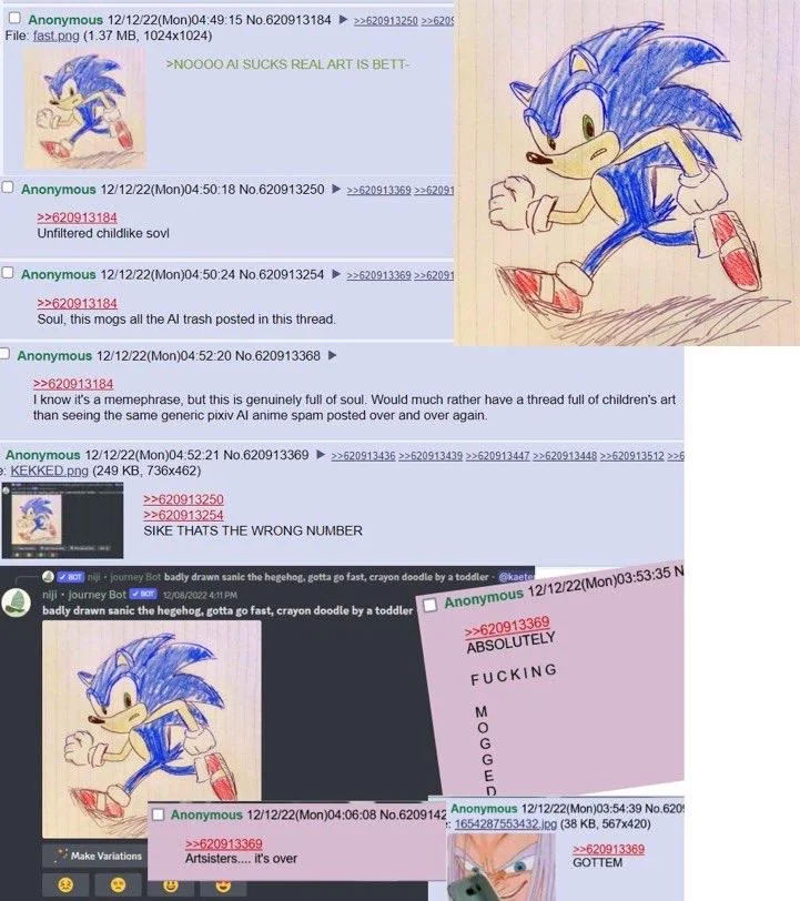 Через пару месяцев Фудзи расскажет, как он увидел ИИ слоп в Тиктоке, который ему так понравился, что он выбросил свои черновики (недельной давности) и написал концовку (2 фрейма, потом устал) при помощи ИИ. Лица фанатов можете сгенерировать сами