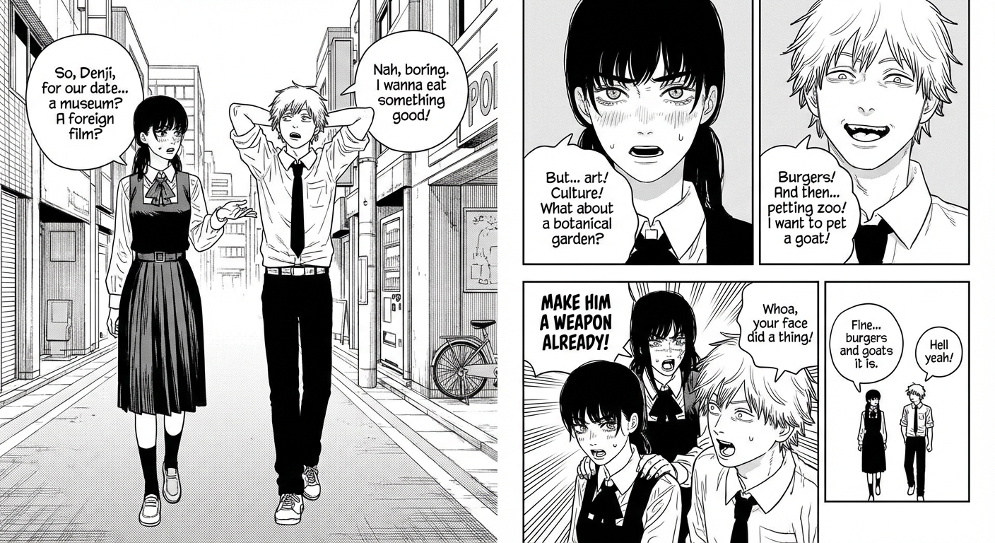 Фудзичмото, отдаю ему должное, смог придумать такую структуру сюжета, при которой может происходить все и ничего, и он может закончить мангу буквально в любой момент и буквально чем угодно, и фанаты все равно радостно будут вопить, какой это вин, переосмысление и новый путь для всей индустрии. Реддитовцы мгновенно найдут 400 фреймов, на которых видно, как все к этому шло с самой главы. Потом правда окажется, что англюсик как всегда все переврал, и смысл концовки другой, но ничего, вот ещё 500 фреймов с подводкой к True Final Last stolen Beautiful Ending.