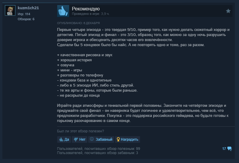 >жду разбор всех концовок, с компиляцией единой истории Чел, действия 5 эпизода это буквально одна ночь, тебе там реально нужны обзоры чтобы прожевать это всё?