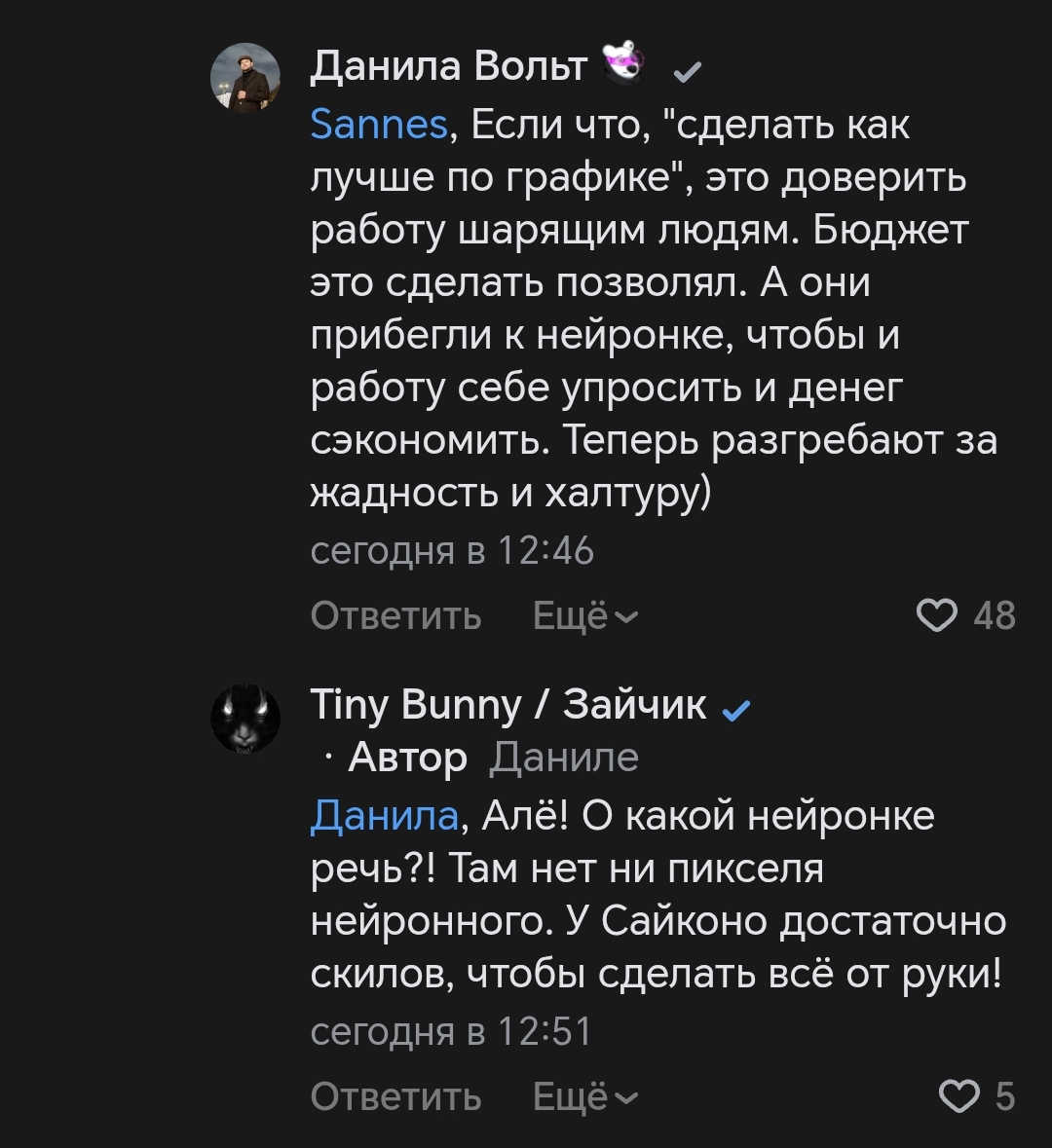 Наш долгий срок разработки это срок честной работы. Да, мы признаём: местами графика может слегка различаться, но это следствие того, что над ней трудились разные люди, а не результат использования ИИ.
