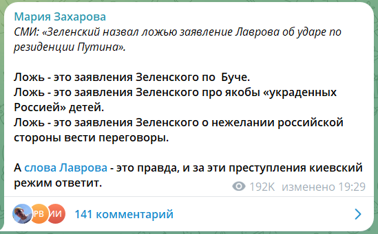 Во всех новостях паника из-за атаки на резиденцию атака на президентский дворец в кремле даже десятой части такой реакции не вызвала, а тем временем Лавров принимает решения об ответной атаке и смене переговорной позиции(никто кроме Президента такие решения в такие быстрые сроки принимать не может). Сам Путин после новости об атаке упомянут только в качестве цитаты Ушакова что он якобы провел разговор с Трампом. Думайте.