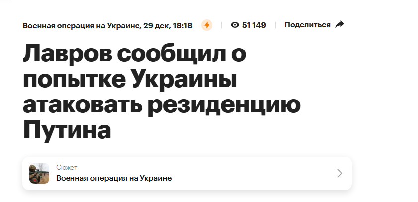 Так чем ответит Попыня кроме салюта по Киеву на НГ всеми доступными ракетами? Поди копил последние месяцы, теперь вот спустили новость про атаку на Самого. Интересно народу там не похуй или он уже предвкушает оливьешку с икрой под водочку, а Попыня где-то на 10-м месте по важности.