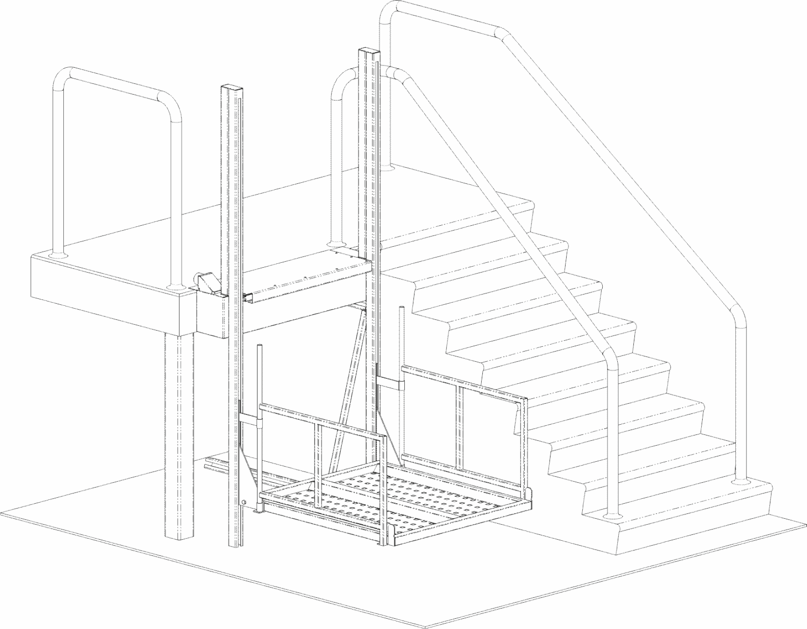 Наклонный подъемник с прямой траекторией движения Привод - канатный с лебедкой Сеть - 220V, 50Гц Материал - металл с порошковым покрытием Напольное покрытие - перф. лист Грузоподъёмность - 225 кг Скорость движения - !sic тихим шагом.