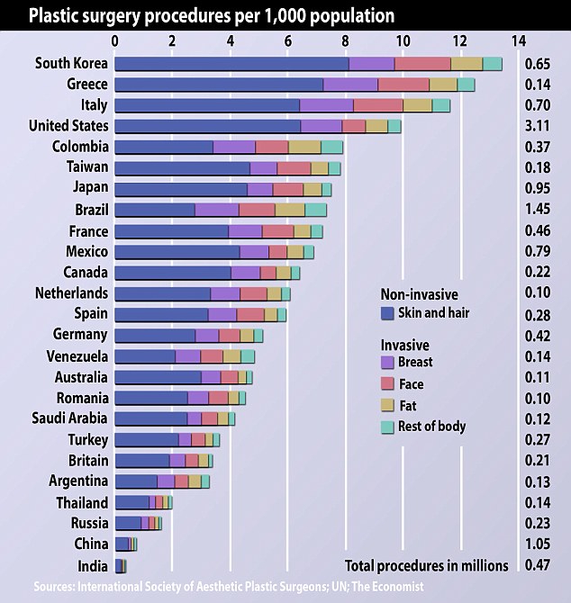 Но людям не объяснили, что в Южной Корее операций пластических отнюдь не в разы, а всего на полшишечки больше, чем в США, Италии и Греции про которые отчего-то не рассказывают бредни про то, что большинство греко-итало-американских школьниц делают операции пластические.