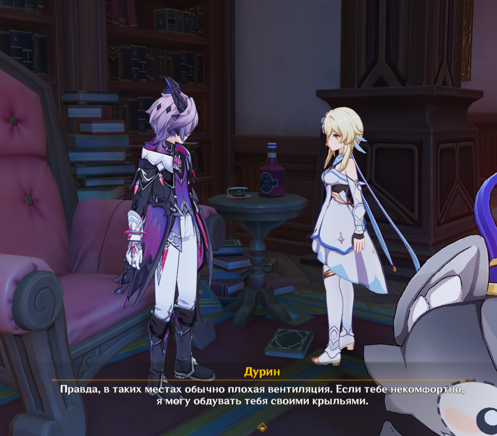 Одновременно в репликах в гримёрке мне предложили отдохнуть Дурин и Мидзуки: Дурин предложил обмахивать меня своими крылышками, а Мидзуки предложила поспать с ней вместе... Мне, если честно, второй вариант нравится гораздо больше.