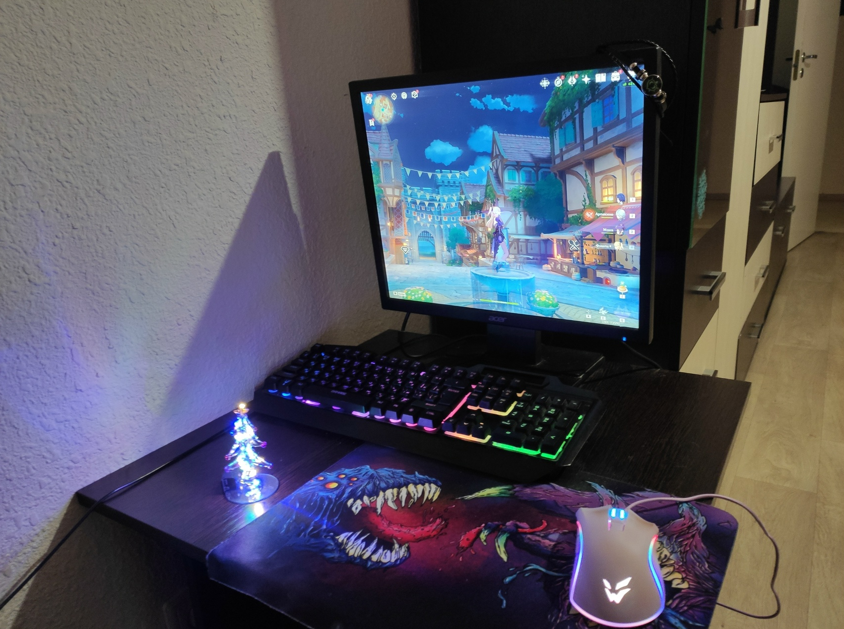 Касательно тематики интерактива - каких-то особых украшений нет, попробовал на палках и верёвках сделать импровизированную гирлянду с Фуриной, мишура вся ушла. По совпадению, подарили несколько шоколадных наборов, но я в целом не фанат конфет, так что пусть ими Фурина займётся, а у меня дошик. С прошлого года больше ничего не изменилось.