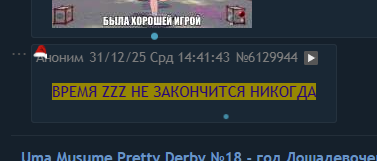 С Новым Годом, Тредовички! Тредовички самые лучшие на планете. Желаю всем крепкого здоровья и много удачи! А также процветания и восстановление по контенту нашего любимого проекта Г А также желаю, чтобы в Новом Году мы всё ещё имели возможность сидеть в тредике и играть в игру без всяких полит.вмешательств.