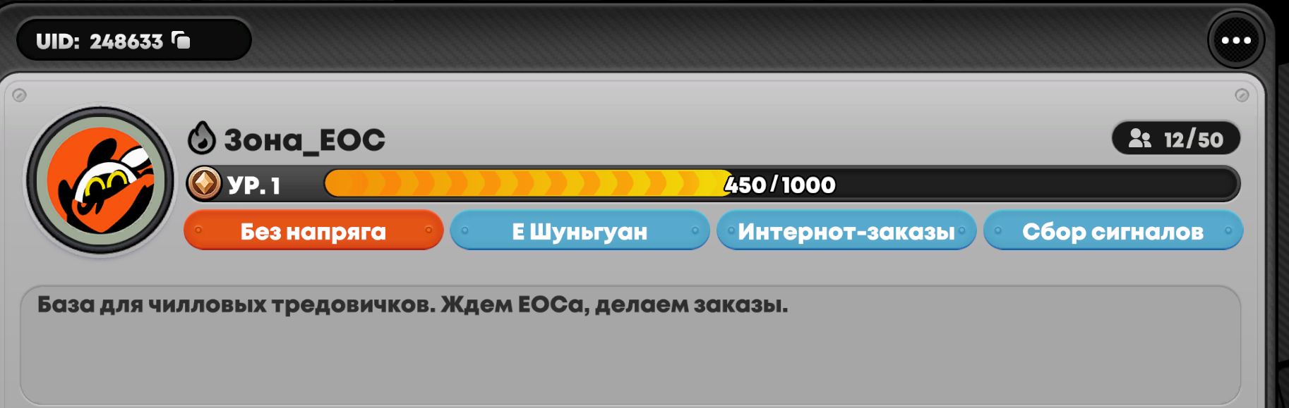 Удобный формат для если играешь каждый день, с минимумом фарма: 10 заказов своих размещаешь + 5 чужих делаешь + сливаешь энергос каждый день + делаешь дейли. Вместо 5 чужих когда валюту зафармил всю допустим или не нужно можно насрать 50 сообщений в чатах любых баз.