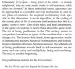 >>61515929 Очень легко. Вселенная - единный динамичный объект, всё что ты видишь - различная плотность и стратификация происходящего. Ты можешь быть чем хочешь и кем хочешь, но это всё лишь игра.