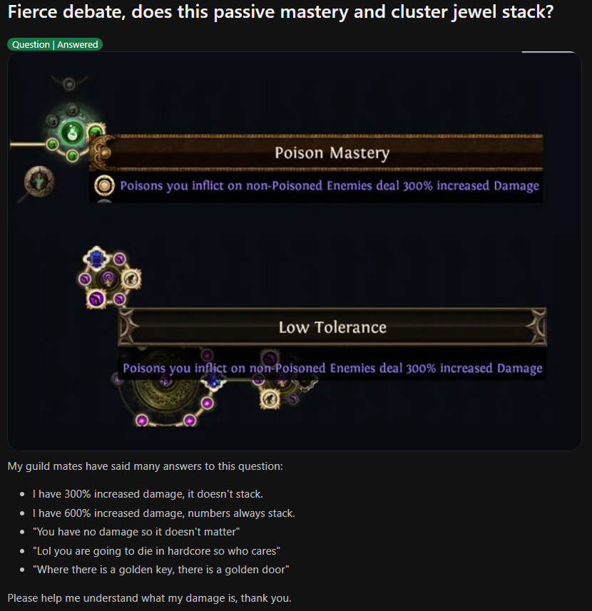 чтобы пое стала нормальной игрой, она должна стать как гарис мод, чтобы игроки сами создавали весь контент и играли на своих серверах. диаблоиды это уже реально мёртвый жанр для отщепенцев, натуральные кликеры