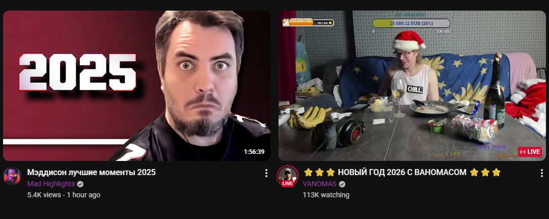 Бля вы заебали, нормальный стрим, как раз в духе времени. А чему радоваться то, есть какие-то надежды на следующий год? За новогодним настроением идите ирл праздновать, а тут гнилые неудачники собрались у которых ничего хорошего в жизни нет и у илюши как раз тот самый вайб, чтобы пересидеть нг.