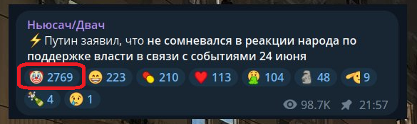 Хуя истерика. Методички как отвечать на народную реакцию Пригожинского марша, так и не придумали. А что тут думать, обсер на фоне 99% ПОДДЕРЖИВАЮТ ПУТЕНА был эпичный, контрить такое невозможно в принципе.