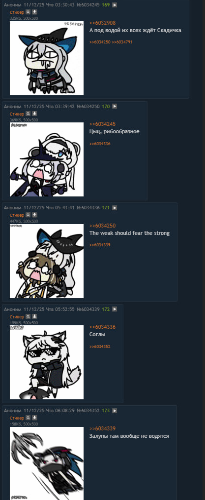 >>6136408 На приведенном примере стикеры используются уебищно, как будто переписка в какой-то калфе происходит и такое надо репортить, чтобы удалялись ветки подобного. Хотя само по себе оно не сильно ниже среднего качества общения в гача-загоне. Срезать все стикеры из-за того, что отдельные личности используют их подобным образом считаю так себе решением. За этот и предыдущий тред энфилда не заметил такой раковости от постов со стикерами. Надеюсь, что тенденция останется такой же и дальше.