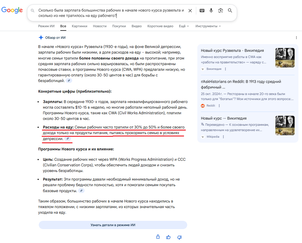 А нейросеть говорит что ты коммпетух ебаный пиздишь гнида, и что процент зарплаты который большинством семей тратился на еду была около 30-50%