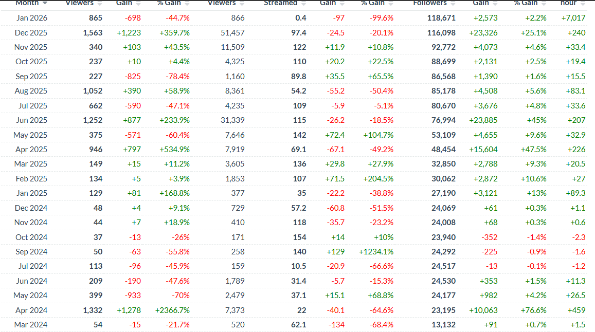 Могла спокойно на звание Слей Квин претендовать,тёлка может пропадать по пол года а потом у неё всё равно по 2 к авг,это напомню больше чем у Фруктозки и Гаечки да и у Генсухи и Овлы если они обычную хуйню стримят и не на хайп темах