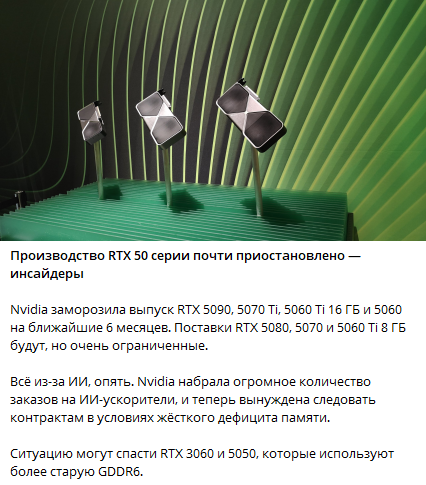 >>7646606 >Я заебался и купил 3070 профессиональный гей Минг. Утешаю себя тем что сэкономил купив более жирную версию. 3070 тоже самое что и 5060 по сути