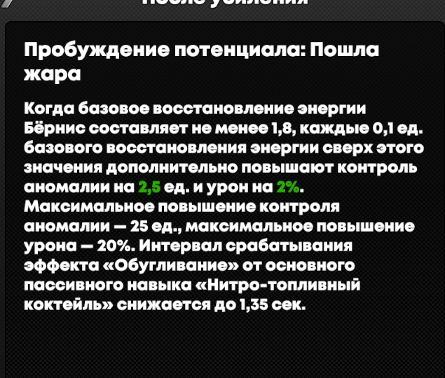 >>6179141 Чел, ну там же написано, за каждые 0.1 поверх 1.8 тебе будут давать +2% урона и 2.5 контроля аномалии. Бонус не может превышать 20% урона и 25 контроля аномалии.