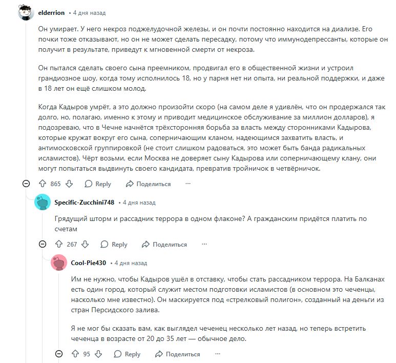 >Кадыров скоро сдохнет, у него почки отказали.