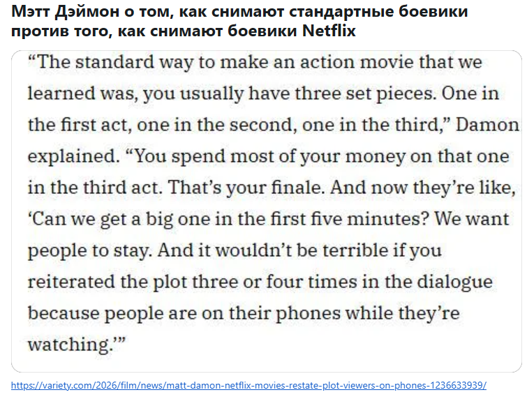 >>7641315 >про ОЗУ наврал Поставил 16 гиговое недоразумение ты, а наврал я, шиз? >про сверхжрущий проц, задушенный до 50-60 Вт наврал Ты ёбу дал? Ты припёр древний проц на 10 нм. вместо 3 нм. у Райзена или Ультры и утверждаешь, что он не жрёт и не греется? Ты ёбу дал? Я тебе даже больше скажу, этот проц настолько жрущий, что ноутбук в играх вырубается нахуй, такой там адский жор >как работает advanced optimus + g-sync не знает И как же? Расскажи, мне интересно твой маркетинговый бред послушать >еще и ебало к осмотру требует?? Вот это конечно наркоман. НАРКОМАНИЩЕ я б даже сказал )) Секундучку, это же ты пиздел, что Ж-синк не будет работать в мониторе за 10к: >+ еще гсинк, в отличие от моника за 10к Так что открывай ротешник, буду карать Да и вообще, в 2к26 году база для игр - это 27" 2560х1440p моник Пялятся в мелкий экран, где нихуя не видно, как тупые зумеры, которые на телефонах играют - это себя не уважать Именно из-за таких жопосмотрителей в мелкий экранчик, как ты, вся индустрия игр и кина скатилось в ёбоное дерьмо Про это даже Мэтт Деймон сказал: >Из-за этого в фильмах для стриминга нужно прямым текстом повторять сюжет в диалогах по 3–4 раза — чтобы невнимательные зрители не терялись в повествовании. К тому же поменялся подход к экшен-сценам: >«Стандартный подход к боевику — это обычно три масштабные сцены. Одна в первом акте, одна во втором, одна в третьем. Основную часть денег тратят на финальную сцену в третьем акте. А теперь [студии] говорят: „Можно сделать что-нибудь грандиозное в первые пять минут? Мы хотим, чтобы люди увидели [до того, как занялись своими делами]. И ничего страшного, если мы повторим сюжет три-четыре раза в диалоге, потому что люди смотрят фильм, сидя в телефонах“» — рассказывает Деймон >Помимо этого, сейчас у режиссёров меньше стимула заниматься красивой картинкой — так как фильмы в основном смотрят на экранах смартфонов и ноутбуков. Всё из-за тебя, урод!