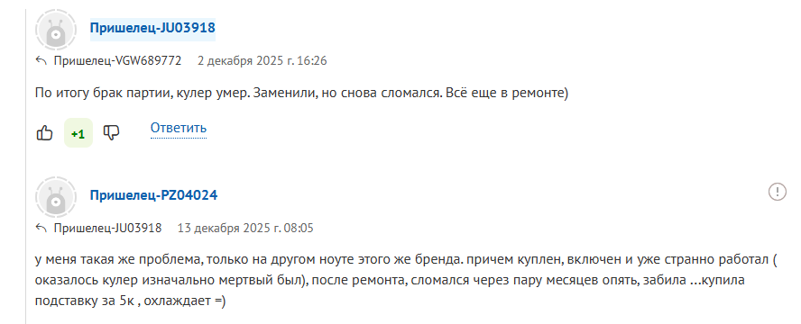 >>7627608 > Вот только даже 18-дюймовые Area-51 с 5070 Ti у перепуков 240к. 16-дюймовые столько же или дешевле. Где такие цены? Я вижу 16 на 5070ти стартуют от 240к и дороже, при том что там говноохлад из-за которого проц работает медленнее чем на более дешёвых конкурентах. Поразительно даже как удалось так плохо с 4 кулерами 18 вообще не найти на 5070ти, да и это бандура тяжёлая и не мобильная